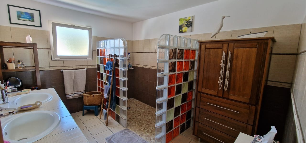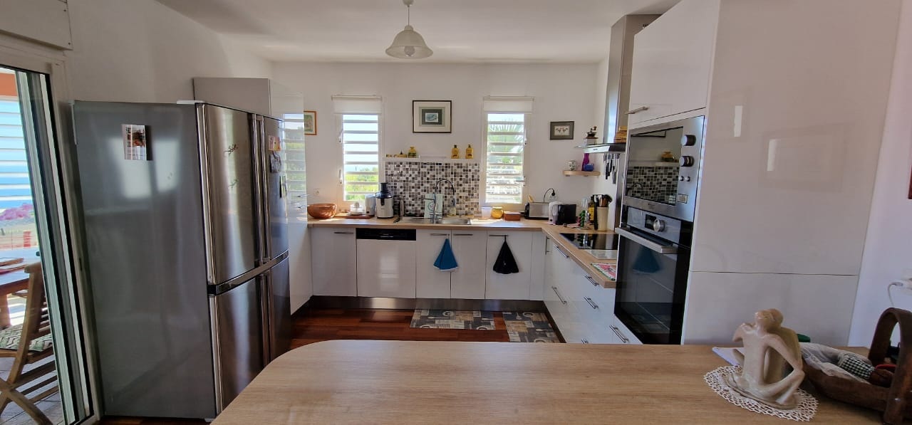 - Cuisine ouverte : Accès direct à une varangue vitrée, équipée de volets électriques, offrant une superbe vue mer et montagne.